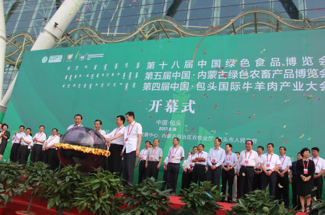 盛夏時(shí)節(jié)的包頭風(fēng)輕云淡,818日,第十八屆中國(guó)綠色食品博覽會(huì)、第五屆中國(guó)·內(nèi)蒙古綠色農(nóng)畜產(chǎn)品博覽會(huì)、第四屆中國(guó)·包頭國(guó)際牛羊肉產(chǎn)業(yè)大會(huì)在內(nèi)蒙古包頭市國(guó)際會(huì)展中心拉開帷幕。農(nóng)業(yè)部原副部長(zhǎng)、中國(guó)綠色食品協(xié)會(huì)會(huì)長(zhǎng)陳曉華,農(nóng)業(yè)部總畜牧師馬愛國(guó),自治區(qū)黨委常委、包頭市委書記張?jiān)褐遥瑑?nèi)蒙古自治區(qū)人民政府副主席白向群,內(nèi)蒙古自治區(qū)農(nóng)牧業(yè)廳廳長(zhǎng)郭健等出席開幕式。