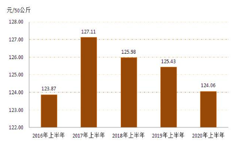 1.小麥:1、2月份春節(jié)假期疊加新冠肺炎疫情,糧企停工停產(chǎn),市場(chǎng)交易趨于平淡,小麥?zhǔn)召弮r(jià)格整體穩(wěn)定。3月份之后,隨著新冠肺炎疫情得到有效控制,各地復(fù)工復(fù)產(chǎn)復(fù)學(xué)的大范圍推進(jìn),截止12月份全區(qū)小麥每50公斤平均收購價(jià)格為124.06元,同比下降1.09%,詳見圖3。(來源:內(nèi)蒙古自治區(qū)發(fā)展和改革委員會(huì))