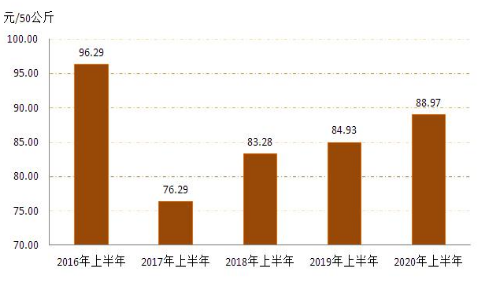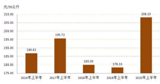 4   20162020年上半年全區(qū)玉米收購價(jià)格對(duì)比圖